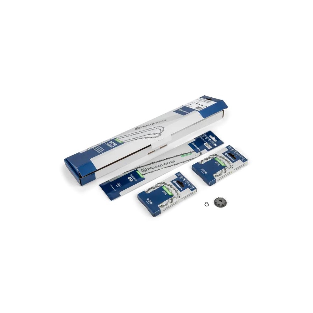 Zestaw składający się z jednej prowadnicy i dwóch łańcuchów, w tym końcówka mini 1/4" (8T)