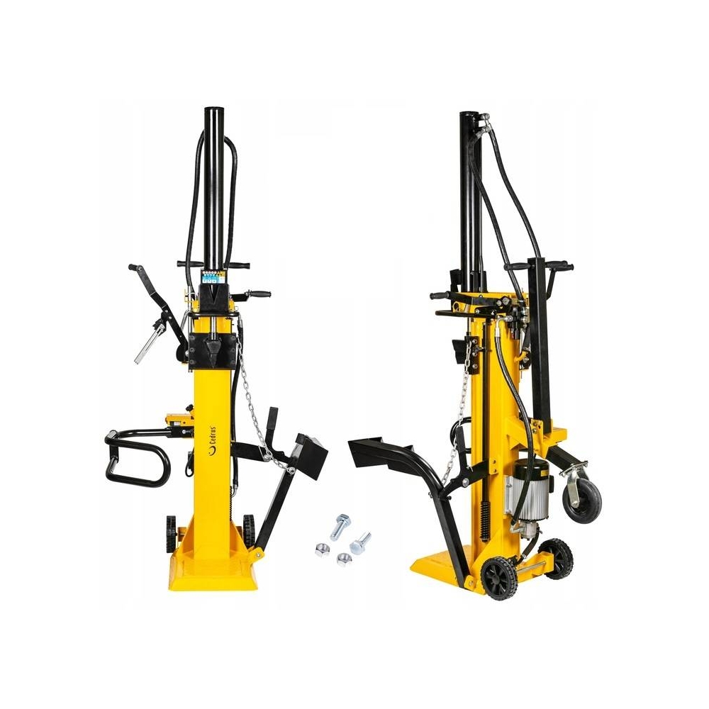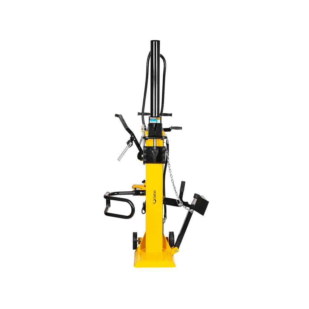 Łuparki elektryczne Cedrus to najlepsze rozwiązania pomocne podczas przygotowywania drewna na opał. Nowy model łuparki pionowej Cedrus LS08V wyposażony został w zewnętrzny siłownik o sile nacisku 11 ton. Łuparka elektryczna LS08V jest w stanie łupać drewno o długości od 56 cm do 104 cm. Dodatkowym atutem podczas pracy z grubszymi kłodami jest mechaniczny podnośnik, dzięki któremu nie musimy używać siły, aby ustawić drewno pod klinem łuparki. Mocny jednofazowy silnik o mocy 3000W zapewni płynne działanie łuparki. Prędkość posuwu siłownia jest regulowana poprzez naciśnięcie drążków sterujących. Pierwsza pozycja powoduje szybki posuw 13,9cm/s przeznaczony do drewna o mniejszej średnicy, druga pozycja służy do pracy z większymi średnicami lub drewnem sękatym prędkość pracy przy tym ustawieniu to 2,9cm/s. Koła będące wyposażaniem seryjnym ułatwiają transport maszyny.