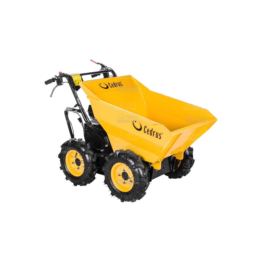 Transporter spalinowy Cedrus TR300 to idelana maszyna do transpotru wszelkiego rodzaju materiałów. Silnik czterosuwowy o pojemności 196cm3 pozwala na wydajną pracę w każdych warunkach. Terenowe opony z agresywnym bieżnikiem pomagają w trudnym terenie budowy. Mechaniczna przekładnia z 3 przełożeniami do przodu oraz biegiem wstecznym pozwala dostosować prędkość do wykonywanej pracy oraz przewożonego materiału.