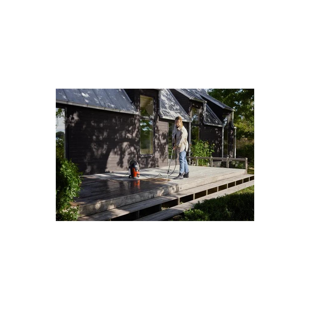 Wygodna, mała, lekka i intuicyjna w obsłudze elektryczna myjka ciśnieniowa zapewniająca bezproblemową obsługę i niewielkie rozmiary. Idealna do mycia samochodu, mebli ogrodowych.