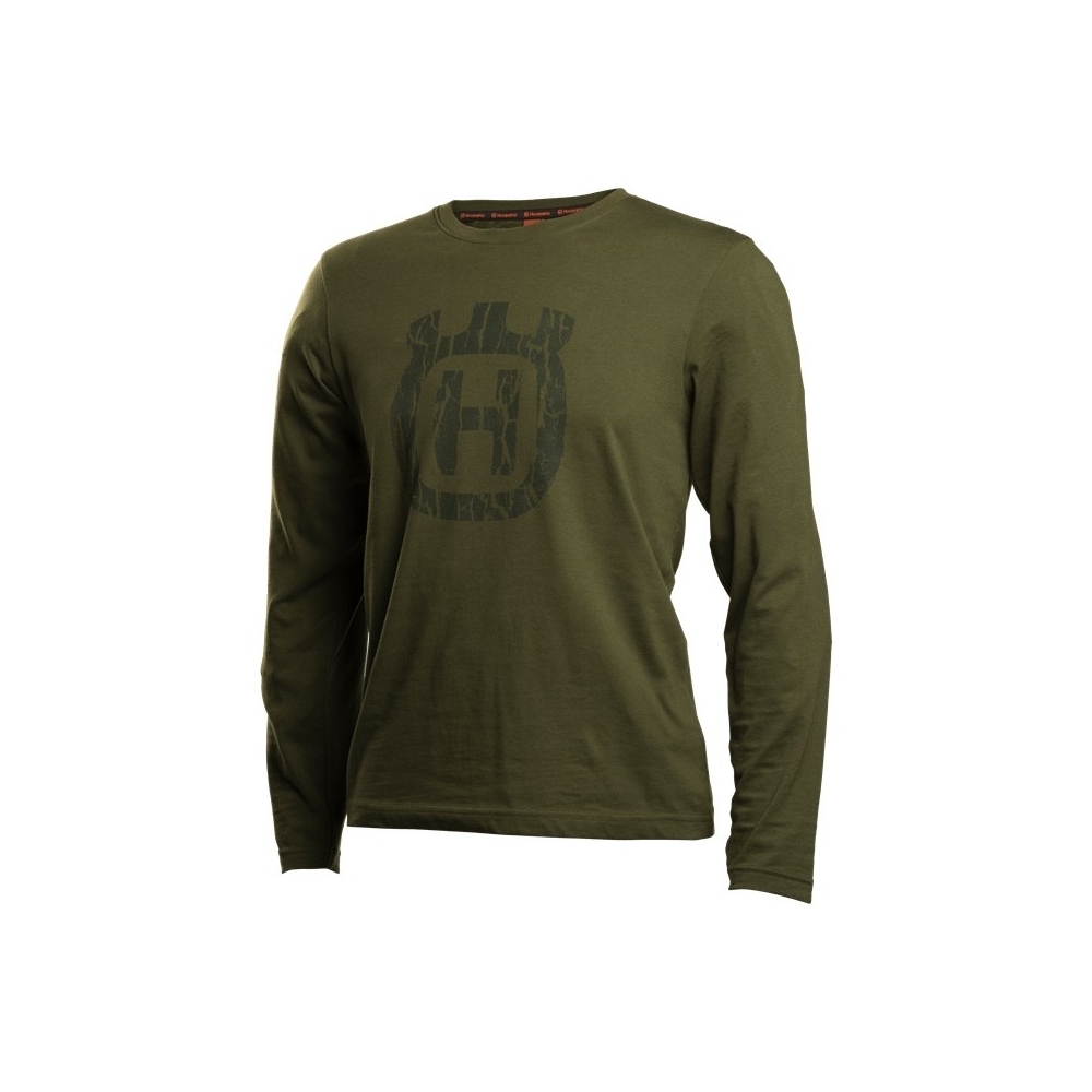 T-shirt z długim rękawem to idealny wybór, gdy pogoda nie jest idealna a ubranie ”na cebulę” wskazane. Koszulka unisex w ciemnozielonym kolorze z logo Husqvarna ze wzorę w korę. Świetnie sprawdzi się w codziennych zadaniach.