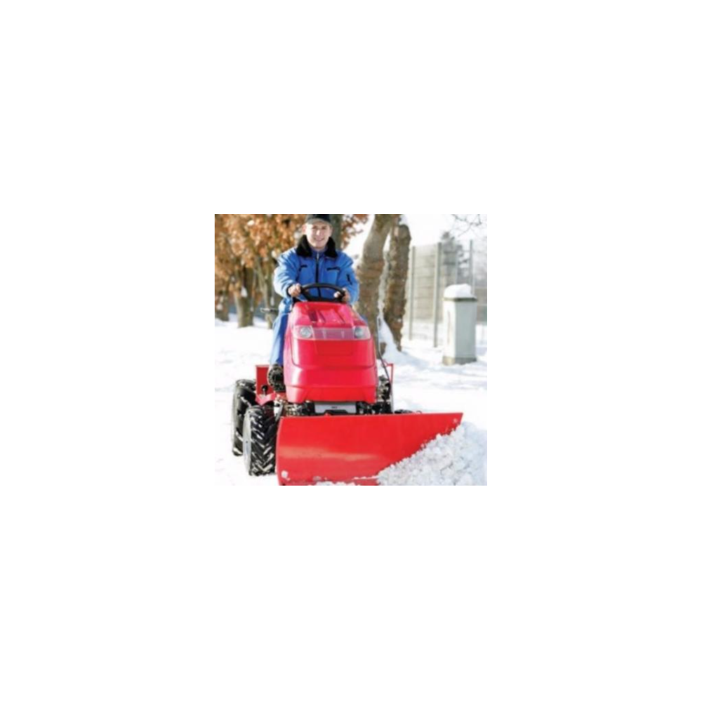 Pług do odśnieżania o szerkości roboczej 120cm można zainstalować do traktorków ogrodowych serii B i C. W standardzie zwiera gumę chroniacą podłoże oraz możliwość zmiany kąta odśniażania.