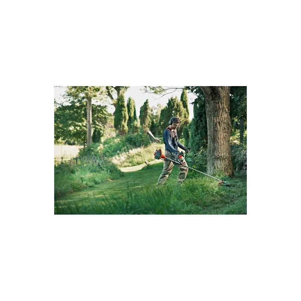 Husqvarna 122R z głowicą żyłkową została zaprojektowana, aby ułatwić przycinanie trawy w dużych ogrodach i zapewnia wygodę użytkowania dzięki niewielkiej masie i silnikowi o pojemności 22 cm3 charakteryzującemu się niskim poziomem hałasu. Wykaszarka wyposażona jest w funkcję Smart Start®, która zapewnia płynny i szybki start przy minimalnym wysiłku. Wygodę użytkownika poprawiają także intuicyjne elementy sterujące i wyłącznik automatycznego powrotu do pozycji wyjściowej, który po użyciu jest automatycznie resetowany do pozycji WŁ. Model 122R posiada rączkę typu "bycze rogi" i podwójne szelki, zapewniające wygodną pozycję pracy, oraz prosty wał zapewniający lepszy zasięg, np. podczas pracy pod krzakami.