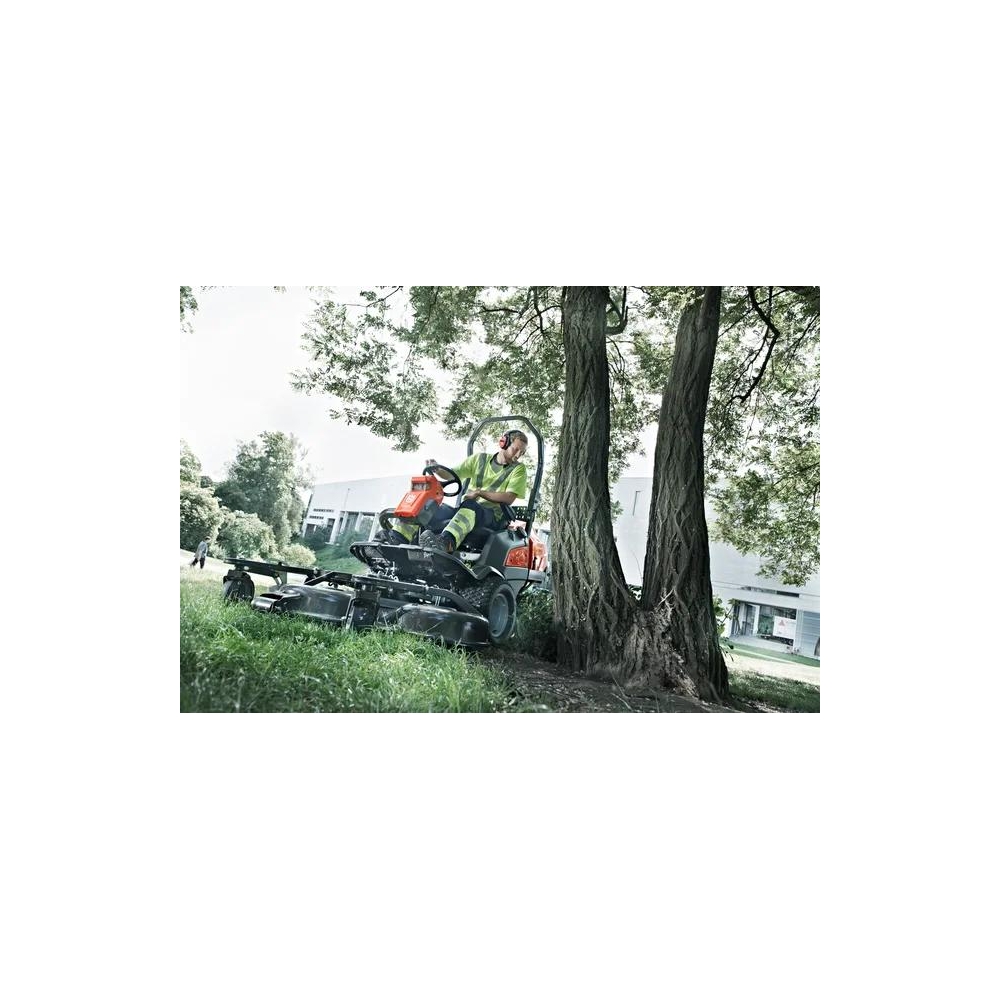 Profesjonalny rider z silnikiem wysokoprężnym o dużej pojemności, oferujący niezrównaną zwrotność i wydajność na skomplikowanych i wąskich terenach, a także na dużych obszarach. Dwie przekładnie hydrostatyczne ( AWD ) zapewnią niezrównaną przyczepność i stabilność na zboczach a także ma mokrym podłożu. Kompaktowe rozmiary maszyny i duża prędkość sprawiają, że nadaje się ona do wielu zastosowań: usługi komunalne, całoroczna obsługa osiedli mieszkaniowych czy zieleni przy hotelach itd. Dzięki zamontowanemu z przodu urządzeniu tnącemu operator ma doskonały widok na obszar roboczy. Oznacza to zoptymalizowaną zdolność koszenia, a także łatwą pracę pod ławkami, krzewami itp. Solidna konstrukcja o długiej żywotności zapewnia trwałość i krótsze przestoje. Szeroka gama osprzętu, taka jak dmuchawy, szczotka, dwukierunkowy pług i kabina, zapewniają możliwość obsługi zieleni przez cały rok. W standardzie zamontowany jest zestaw hydrauliczny do napędu niektórych akcesoriów. Nowy wyświetlacz pokazuje wybrane parametry pracy maszyny. Rider gotowy jest do połącznia z systemem zarzadzania flotą maszyn – Husqvarna Fleet Services ( HFS ). Husqvarna P 525DX jest dostarczana bez urządzenia tnącego i może być wyposażona w urządzenia tnące Combi o szerokości 132 i 155 cm.<br /><br />Kabina jest antywibrowana od podwozia, co znacznie zmniejsza wibracje i hałas. Przestronna kabina posiada przeszklone drzwi, przednią szybę przedłużoną na dach i wysoki fotel Grammer, co zwiększa komfort kierowcy przez cały rok. W pełni wyposażona w zestaw hydrauliczny, światła robocze LED, światła drogowe, przeciwwagę, ogrzewanie, światło ostrzegawcze itp. Kabinę można łatwo zdemontować, gdy nie jest potrzebna na przykład w okresie letnim. Konstrukcja ROPS jest zintegrowana z kabiną.