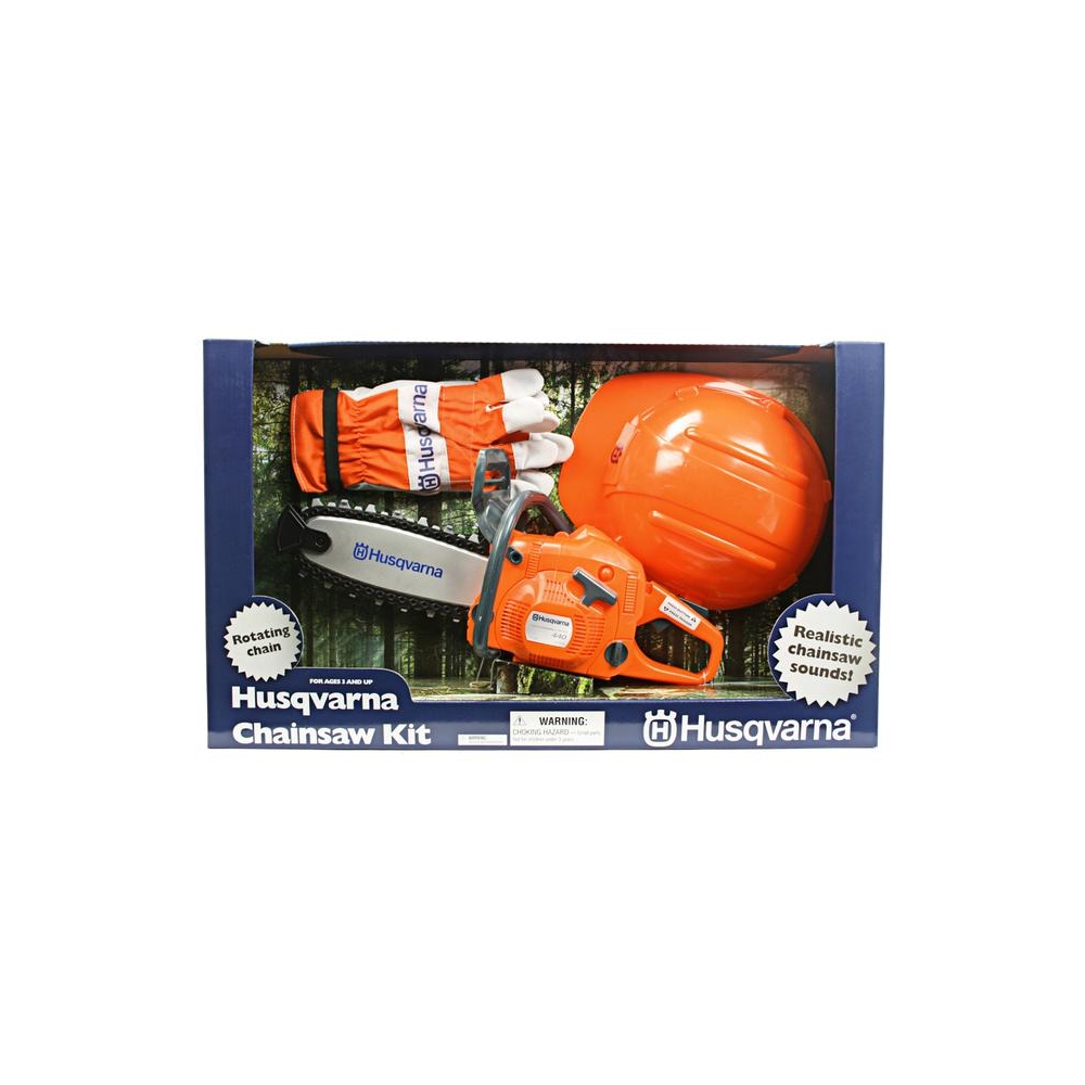 Wygląda jak prawdziwa pilarka łańcuchowa Husqvarna 440! Zabawkowa pilarka łańcuchowa jest odpowiednia dla dzieci od 3 roku życia. Zawiera realistyczny dźwięk pilarki łańcuchowej i obracający się łańcuch. Zestaw zawiera równiez kask i rękawice.